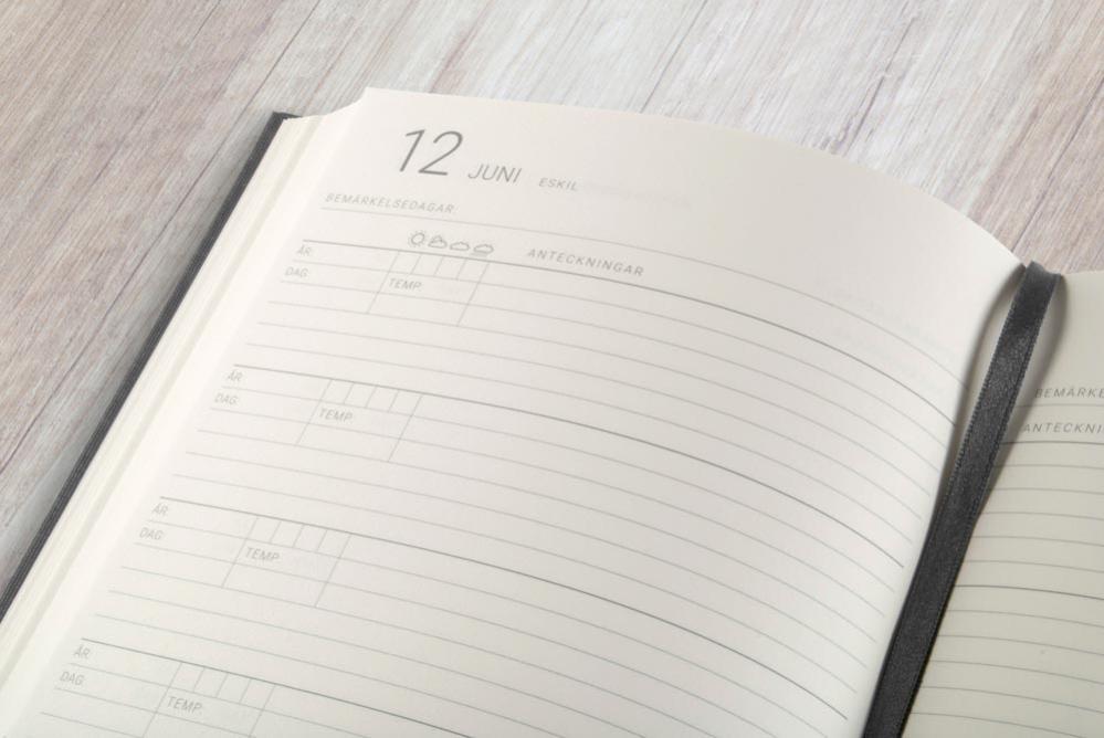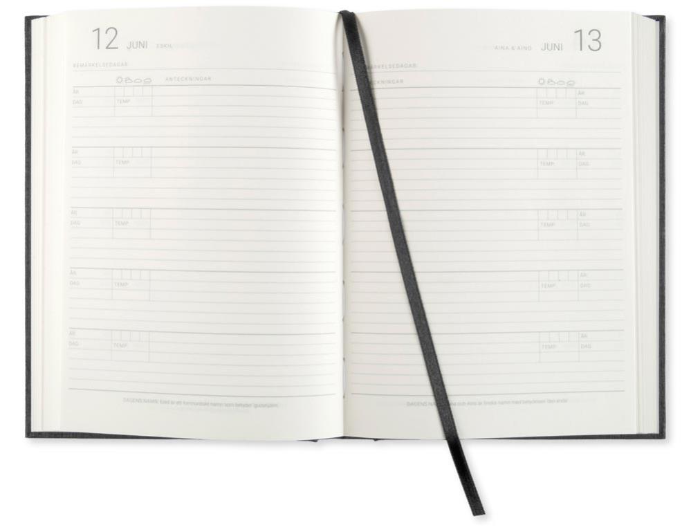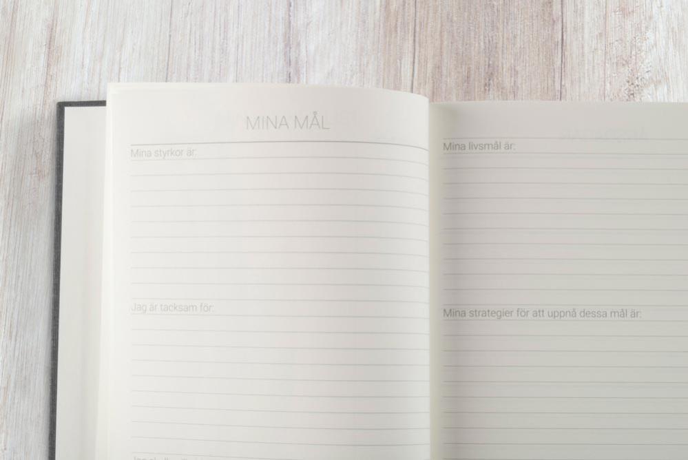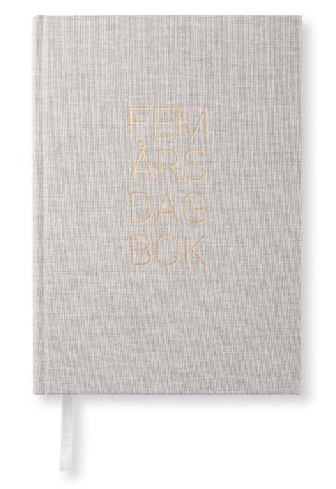 Svensk kvalitetsdagbok för 5-års noteringar. Trådbunden inlaga med åldersbeständigt och miljövänligt svenskt kvalitetspapper som är syrafritt och åldersbeständigt samt FSC certifierat. Omslag i tålig textil. Matchande märk- och kapitälband. Innehåller bucket list, mina mål och femårsplan. Finns några anteckningssidor för favoritcitat eller anteckningar om speciella händelser.