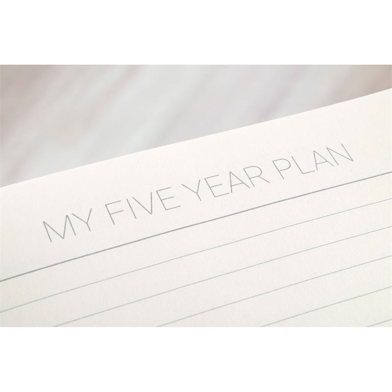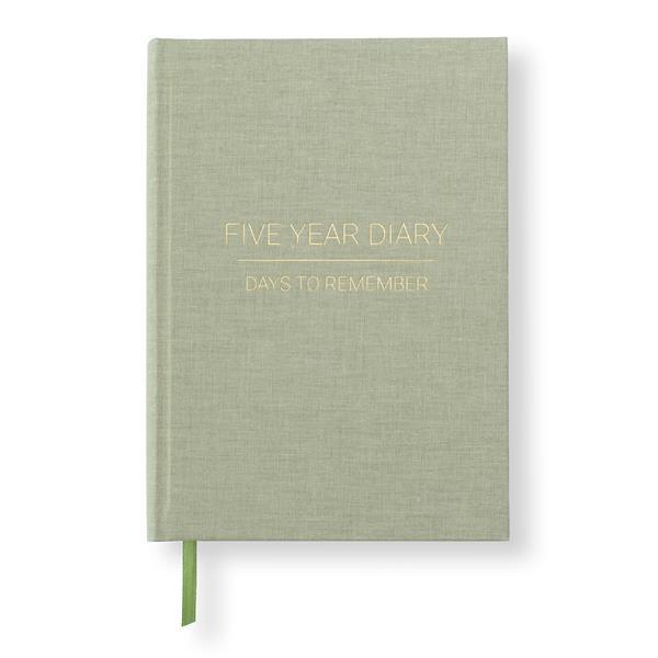 Hållbar 5-årsdagbok (Engelsk version) i A5-format med sidor för Bucketlist, livsmål, femårsplan och bemärkelsedagar. Svensk formgivning och vackert omslag i textil. Finns i flera färger. Matchande Kapitäl- och märkband. Svenskt miljöcertifierat och syrafritt 90 grams kvalitetspapper för hög skrivkomfort.
