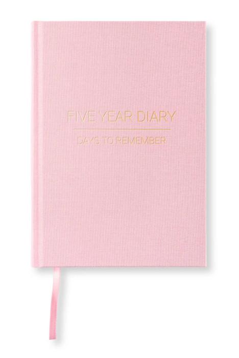 Hållbar 5-årsdagbok (Engelsk version) i A5-format med sidor för Bucketlist, livsmål, femårsplan och bemärkelsedagar. Svensk formgivning och vackert omslag i textil. Finns i flera färger. Matchande Kapitäl- och märkband. Svenskt miljöcertifierat och syrafritt 90 grams kvalitetspapper för hög skrivkomfort.