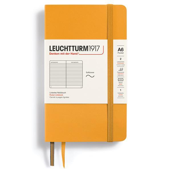 Leuchtturm1917 A6 softcover - En anteckningsbok med mjukt böjbart omslag, 121 numrerade sidor i behändigt A6-format. Innehåller innerficka, sida för innehållsförteckning, 8 perforerade och löstagbara sidor, märkband, klistermärken för märkning och arkivering, samt ett elastiskt band som håller ihop anteckningsboken. Trådbunden. Ink-proof (80 g/m2)
