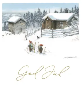 Julkort Cancerfonden 10-pack Härbre/Tomtar med skidor