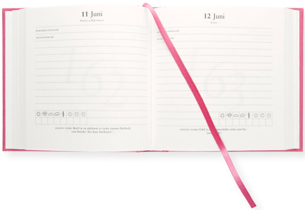 Hållbar Dagbok för 365 dagar i formatet 15 x 15 cm med vackert omslag i linnetextil. Svensk formgivning. Matchande Kapitäl- och märkband. Svenskt miljöcertifierat och syrafritt kvalitetspapper för hög skrivkomfort.