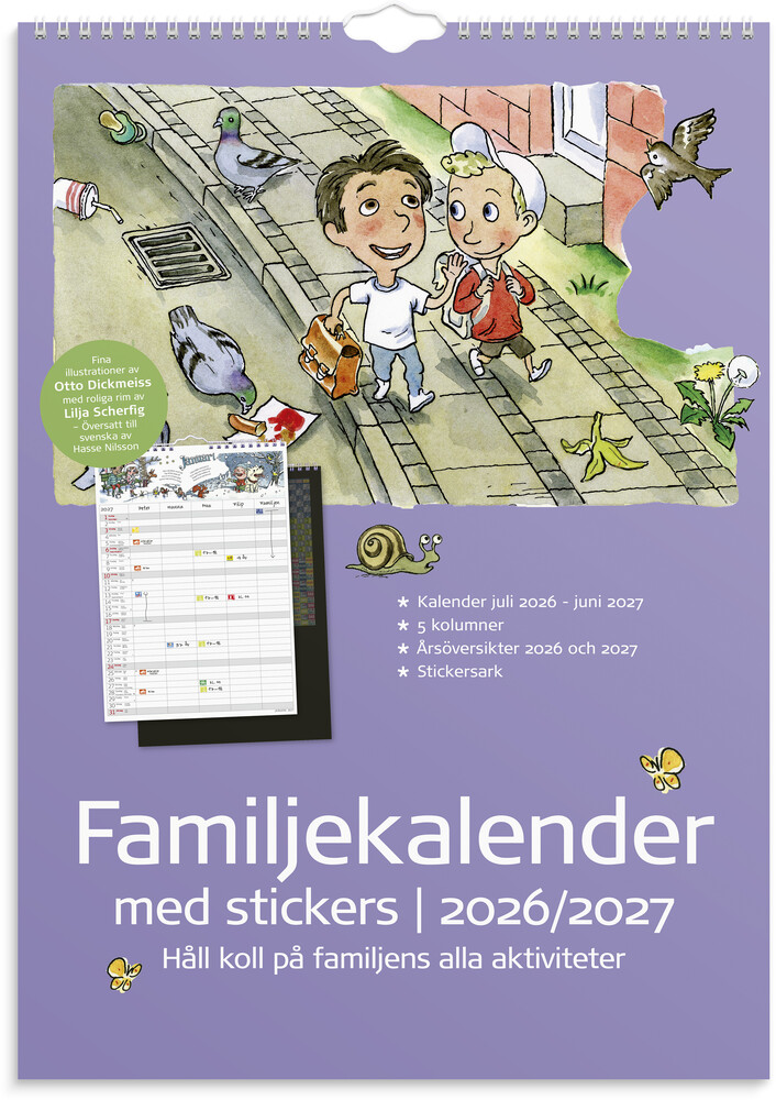 Gör planeringen till en rolig familjeaktivitet med Stickers familjekalender! Liva up att-göra och kom-ihåg med roliga rim och massor av stickers som barnen själva får sätta vid sina aktiviteter. Med fem kolumner finns det plats för hela familjens planer och det blir enkelt att se vad alla har på gång och ingen risk att missa fredagsmys eller födelsedagar.