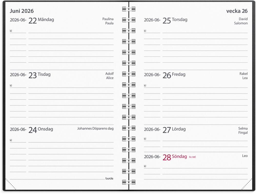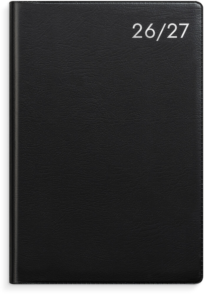 Liten och smidig kalender med svart omslag i plast. Perfekt följeslagare att ha med sig i väskan, eller till och med i fickan.