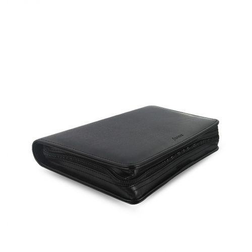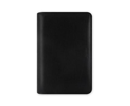 En mycket skinnliknande pärm i konstmaterial med dragkedja. Bredd 135 mm, höjd 187 mm.