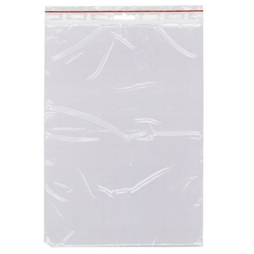 Blixtlåspåse med kraftig blixtlåsförslutning, röd linjemarkering och tre vita skrivfält. Påsarna är livsmedelsgodkända och har 5mm eurohål för upphängning. 50 mikron, 1000 påsar buntade om 100st. Dessa påsar tål både kyla och värme och kan användas i temperaturer från –18 °C till 80 °C.