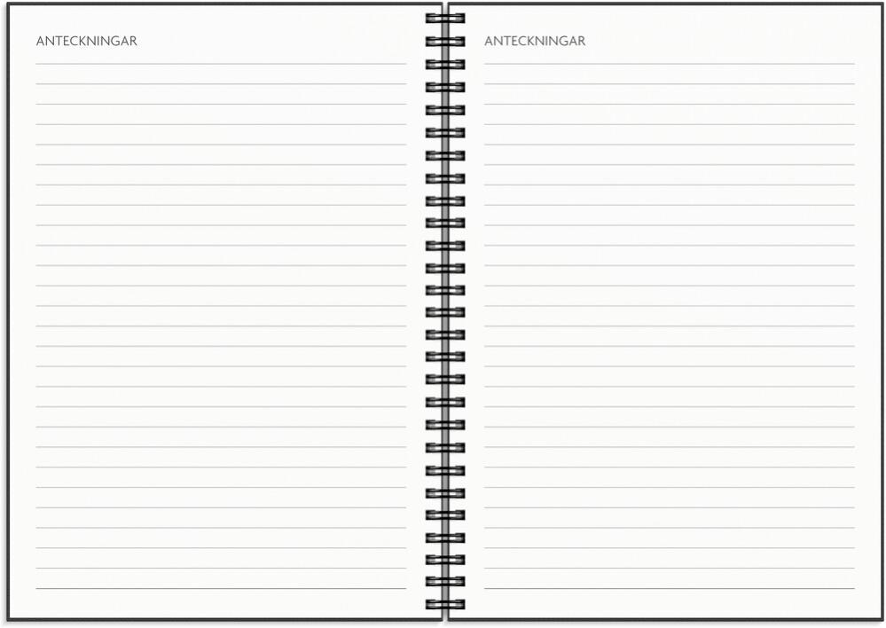 Få det Gjort är en smakfull kalender med bra möjlighet att komplettera dina redan existerande tekniska lösningar. En kombination av analog och digital planering är ett vinnande koncept för din vardags- och jobbplanering! A5 kalendern har veckouppslag med hela veckan i en horisontell layout på vänster sida och till höger finner du olika listor för inköp, prioriteringar och möten. Lägg till ett stilfullt omslag eller uppskatta den stilrena svart/vita designen precis som den är.