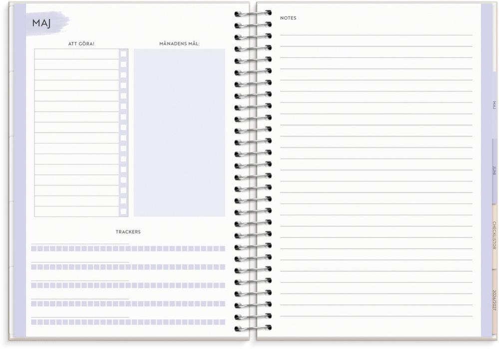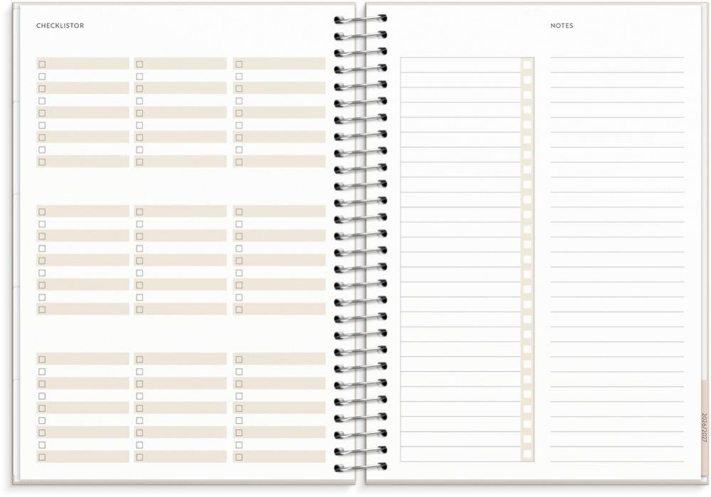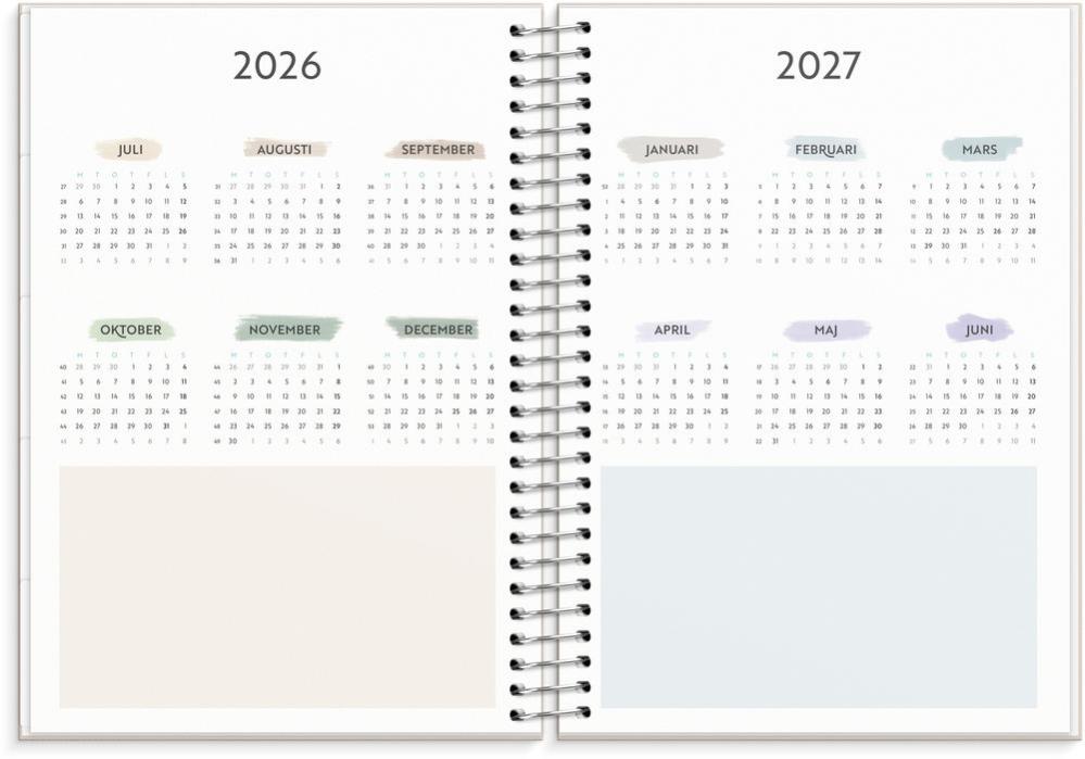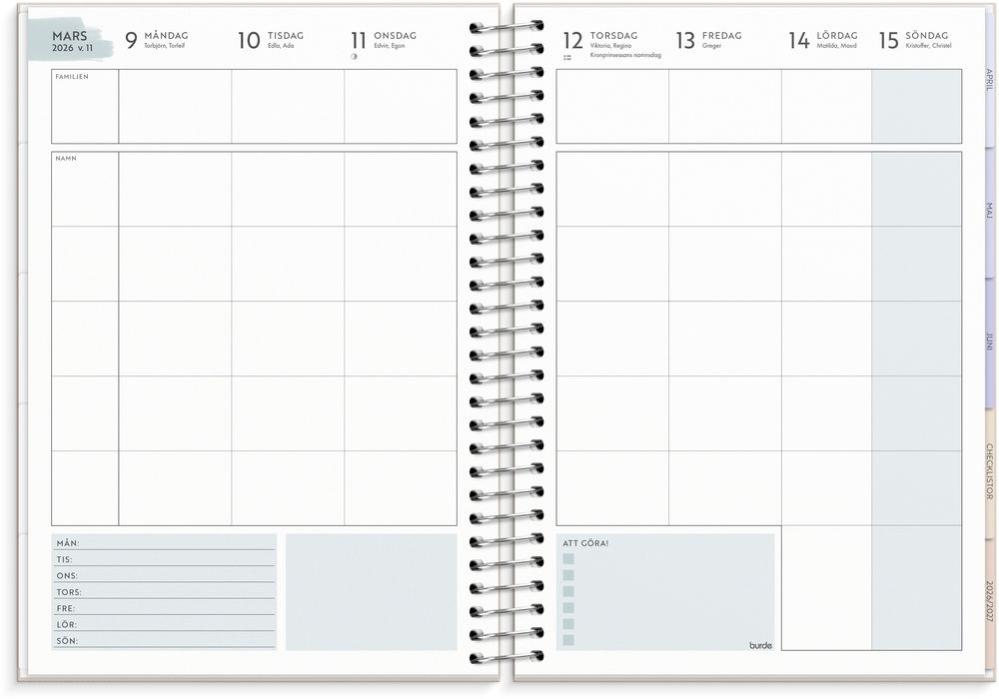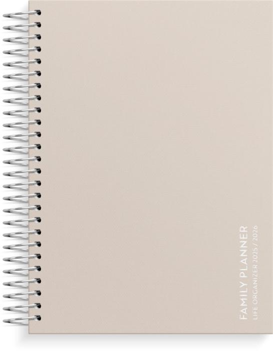 All planering för familjen i en och samma kalender. I ett stilrent och neutralt omslag är kalendern utformad med sidor som innehåller check-listor, familjens mål och tydliga uppslag för både veckor och månader med plats för att skriva ner varje familjemedlems aktiviteter.