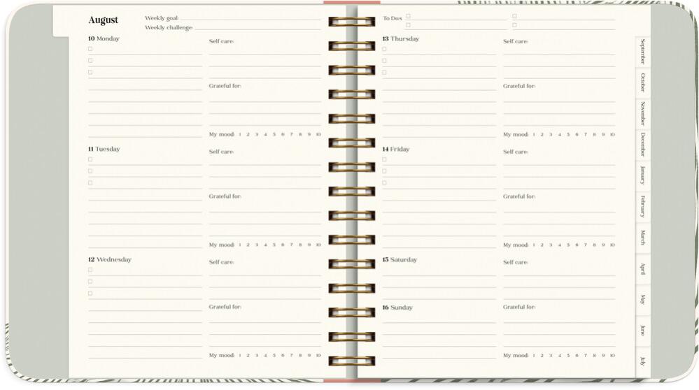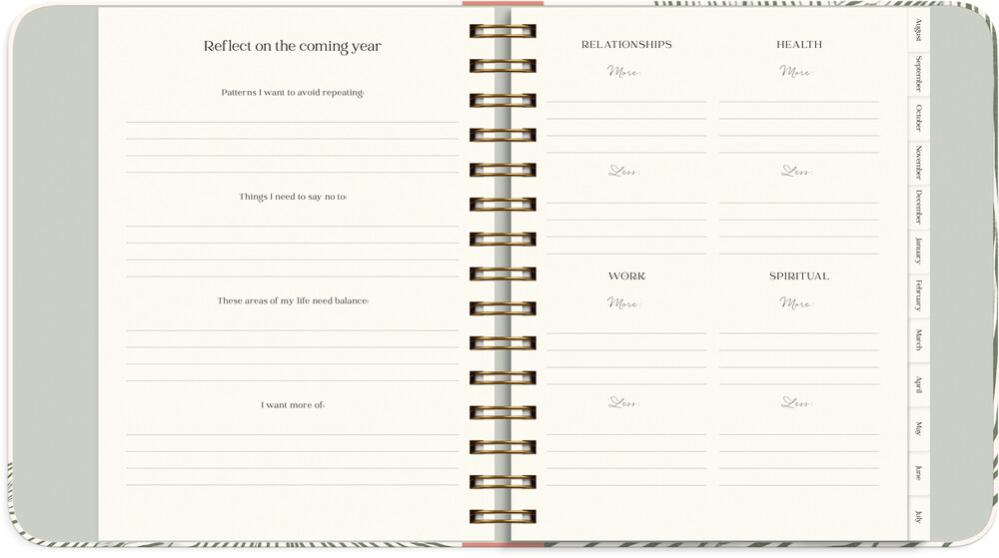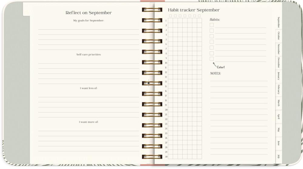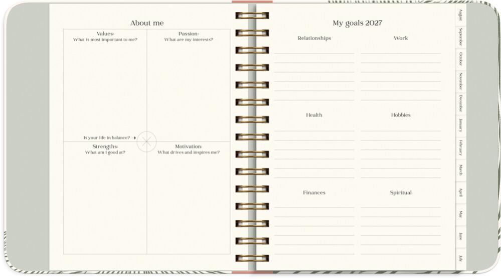 Du får även möjlighet att sätta upp personliga mål inom allt från fysisk och mental hälsa till relationer, skola, ekonomi och fritidsintressen. Genom månatliga reflektioner håller du fokus på vad som får dig att må bra och utvecklas, och med hjälp av en habit tracker kan du följa dina vanor och bygga hållbara rutiner över hela året. Student Planner innehåller dessutom utrymme för kurslitteratur, resultat, vision board och bucket list – allt samlat på ett ställe för att du ska kunna planera smart, plugga fokuserat och leva ditt bästa liv.