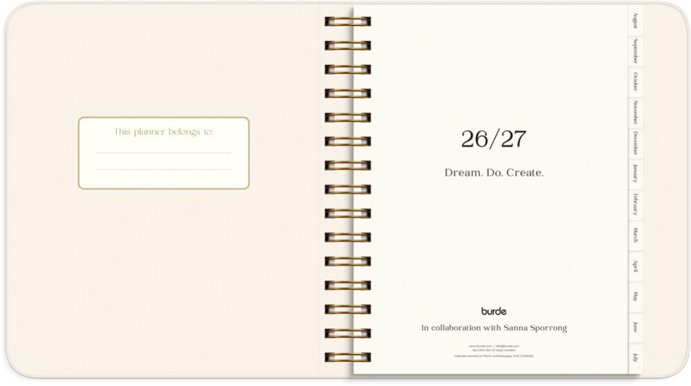 Daterad kalender i samarbete med bokformgivaren och författaren Sanna Sporrong, med fokus på stilren design och personlig utveckling. Life planner Decor är mer än bara en kalender. Det är ett verktyg för att lära känna dig själv och samtidigt planera din vardag för att må så bra du bara kan.