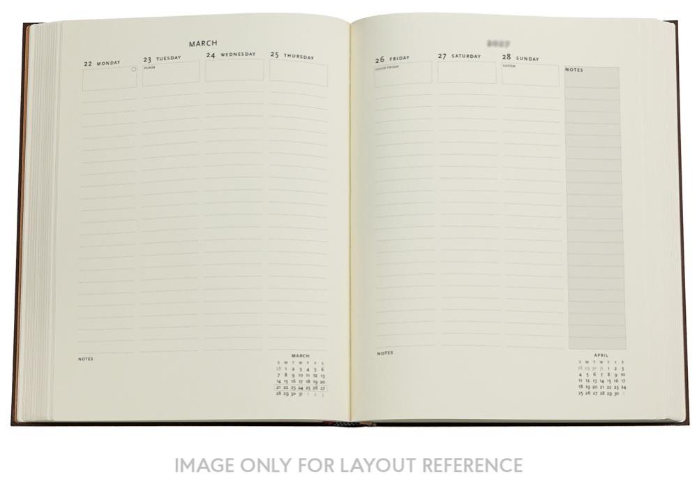 Kalender från Paperblanks med vertikal kalenderinlaga, internationella helgdagar. Kalendern sträcker sig från juli 2026 till december 2027. 80 grams papper.
