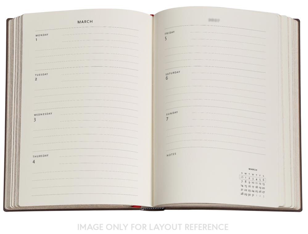 Kalender från Paperblanks med horisontell kalenderinlaga, internationella helgdagar. Kalendern sträcker sig från juli 2026 till december 2027. 80 grams papper.
