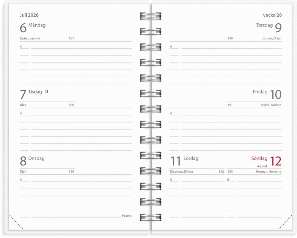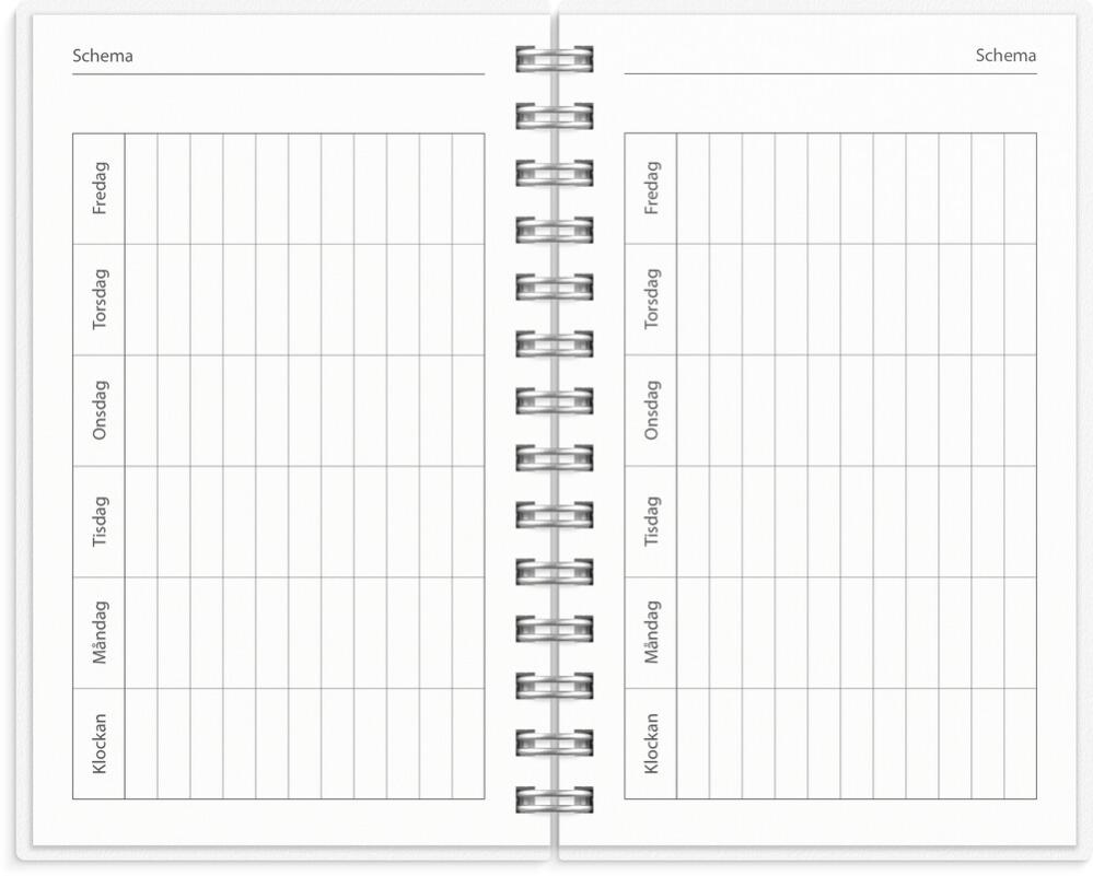 Skolårskalender med en vecka/uppslag, 79x127mm