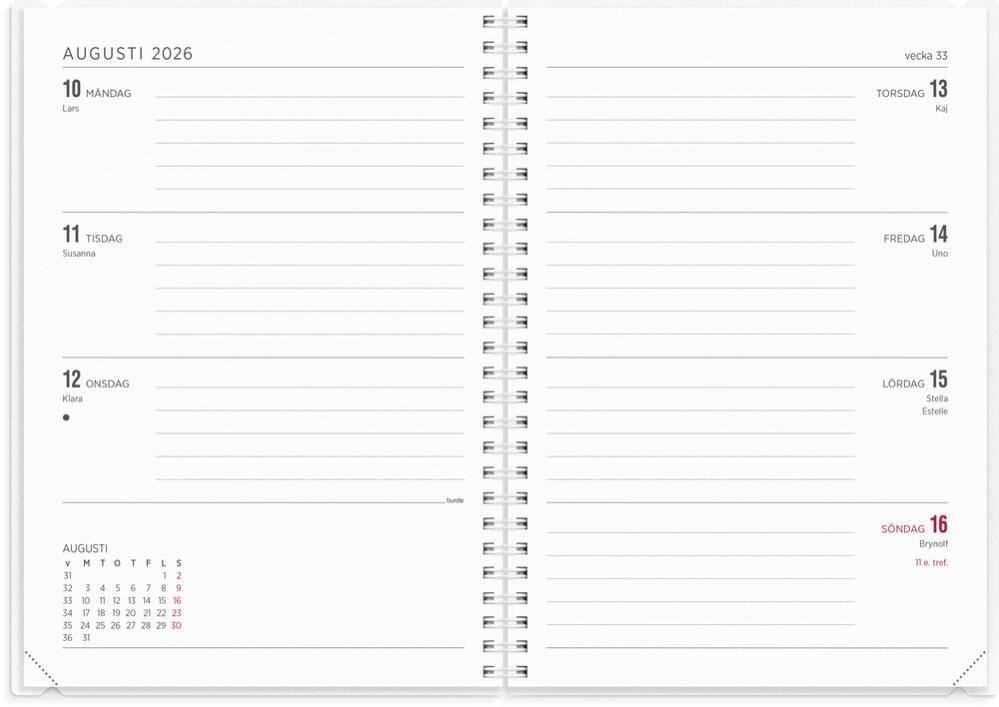 Skolårskalender med en vecka per uppslag, A5.