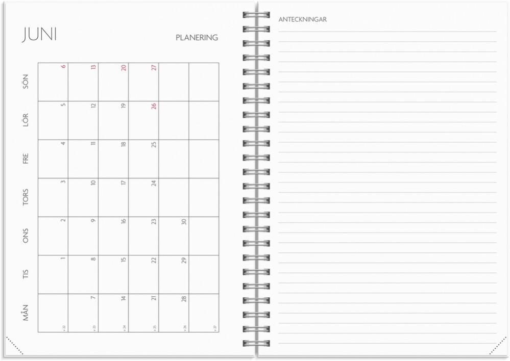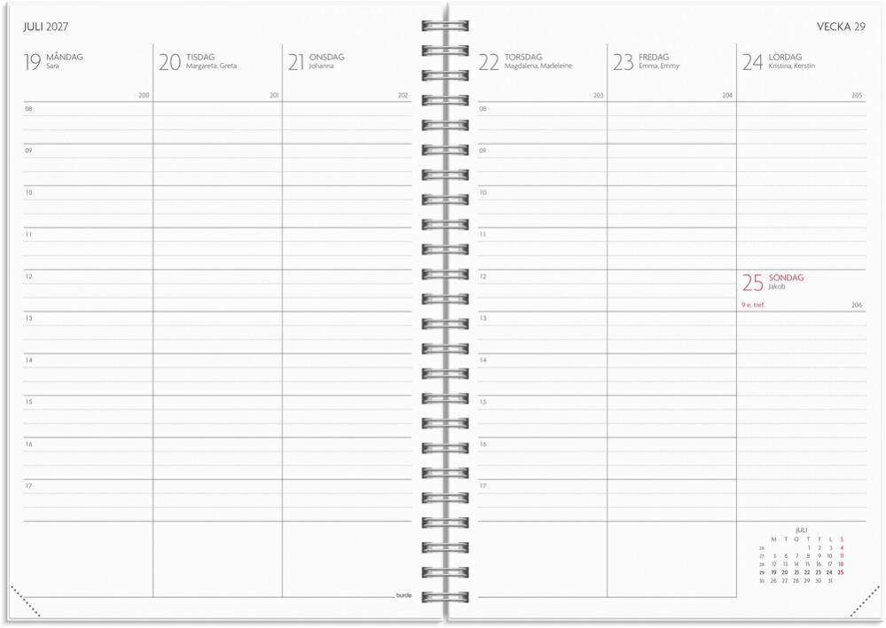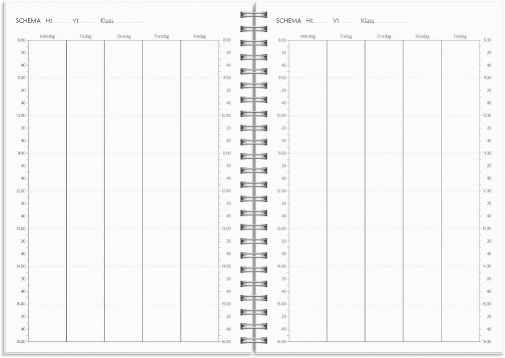 Skolårskalender med vertikal vecka/uppslag, A5.