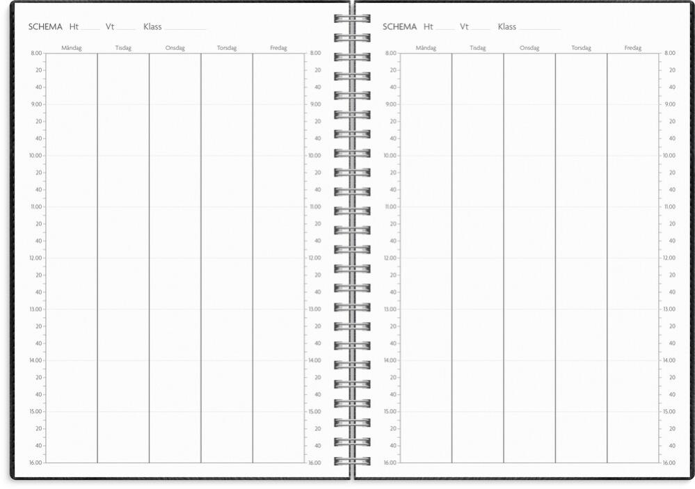 Skolårskalender med vertikal vecka/uppslag, A5.