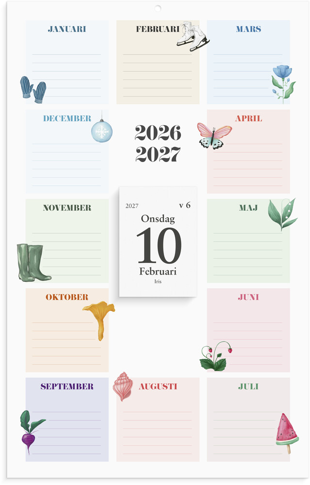 Blocket har en vardag per blad och helgdagar på samma blad. På bakgrunden där dagsblocket hänger finner ni en månadsbild för varje månad. Där finns plats för att skriva om speciella aktiviteter/händelser eller vilka elever som har födelsedag just den månaden. Antal sidor: 317.
