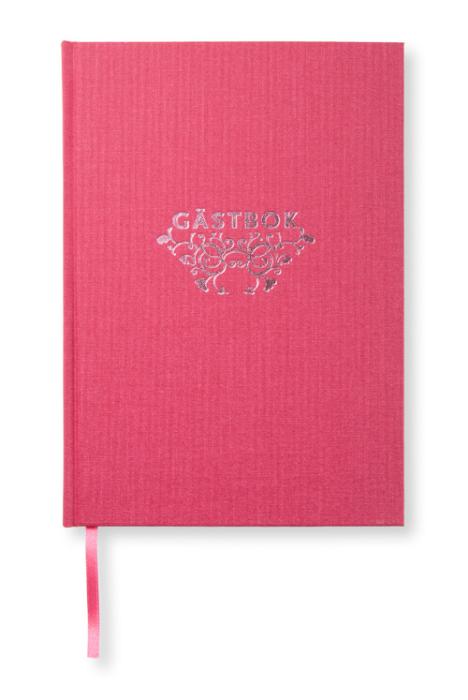 En vacker och klassisk gästbok som håller länge och pryder sin plats. Fint bunden med textilomslag och trådbunden inlaga. Märk- och kapitälband av textil. Svenskt kvalitetspapper i 100 gr.