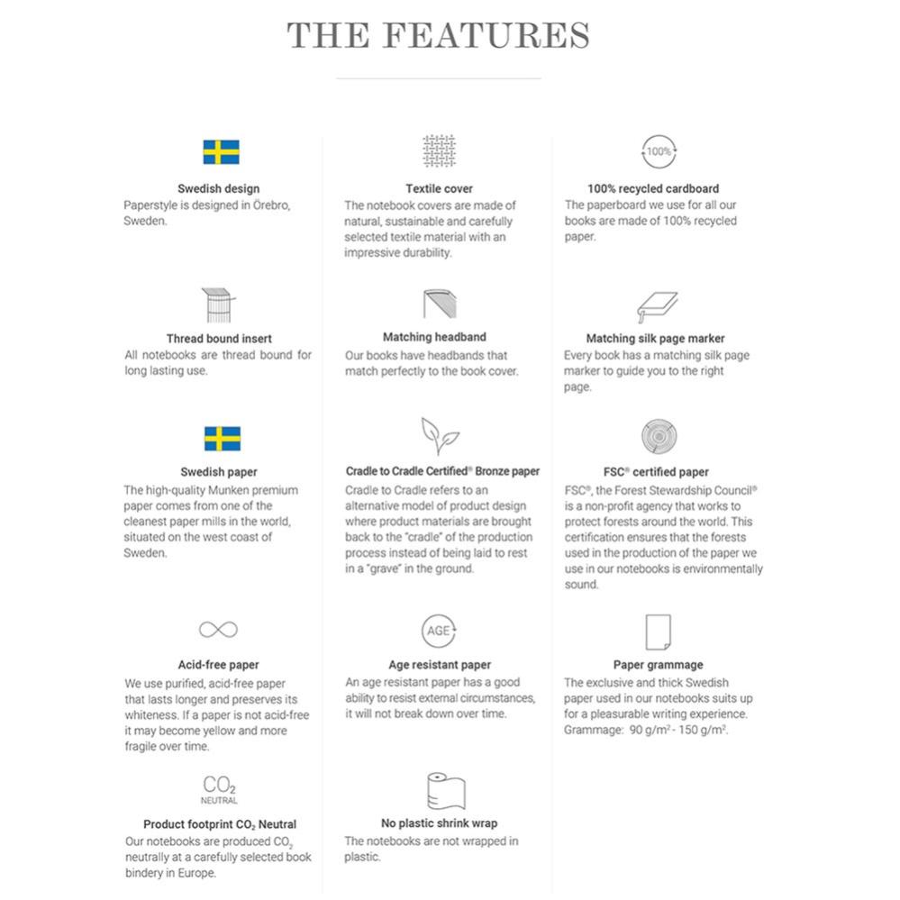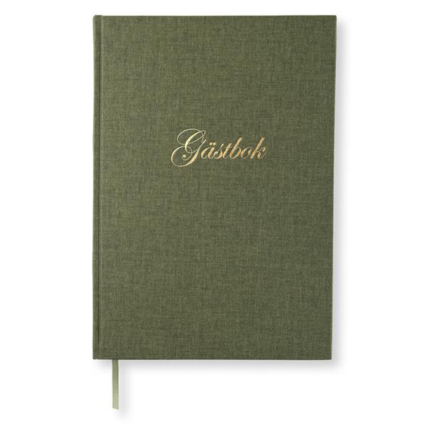 En vacker och klassisk gästbok som håller länge och pryder sin plats. Fint bunden med textilomslag och trådbunden inlaga. Märk- och kapitälband av textil. Svenskt kvalitetspapper i 100 gr.