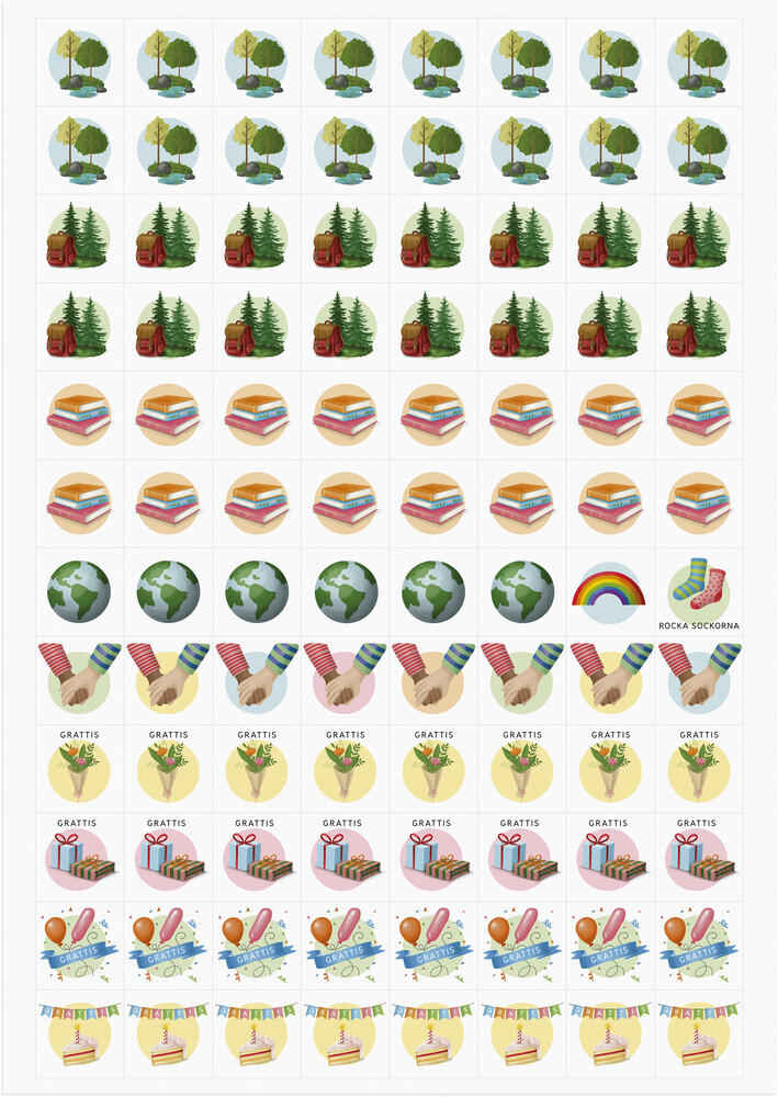 Även högtider och roliga temadagar finns illustrerade i kalendern för att skapa ytterligare engagemang och diskussion i klassrummet. Utöver detta medföljer även 2 stora stickersark med händelser att klistra in, vid exempelvis födelsedagar, utflykter eller liknande.