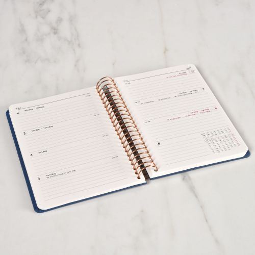 KOZO Planner 2026 är en stilren, trespråkig årskalender som är perfekt för att organisera både jobb, skola och vardag. Det hårda omslaget och den kaxigt stora ryggspiralen gör det enkelt att öppna och skriva i kalendern även när du är på resande fot. Kalendern innehåller elegant crème färgat papper och är klädd i ett lyxigt canvastyg med detaljer präglade i brons.