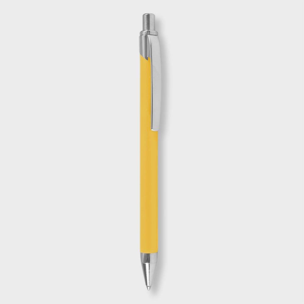 Kulpenna med gummerad pennkropp. Med utbytbar patron. Livstids garanti på tryckmekanismen. Polerade metalldetaljer och clips.