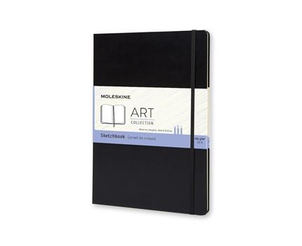 Moleskine Sketchbook A4 Black är gjord i tjockt papper med hög kvalité och är perfekt för skisser och temperafärger. Hårt omslag med elastisk stängning, rundade hörn. Skissboken innehåller 96 sidor syrafritt 160 g/m² papper. Samt ett bokmärke och en expanderbar innerficka som innehåller Moleskines historia.