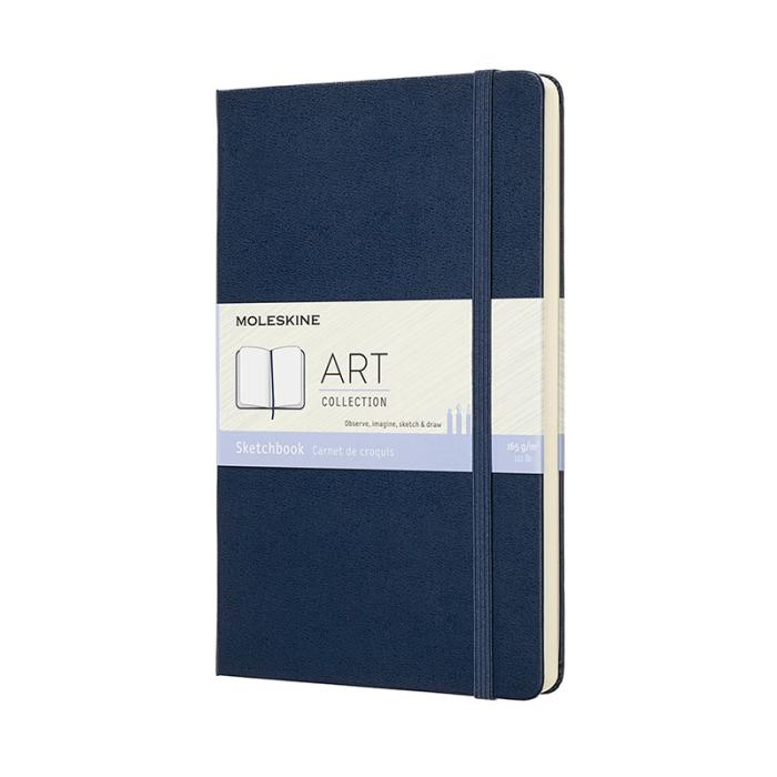 Moleskines Skissbok är gjord i tjockt papper med hög kvalité, perfekt för skisser och temperafärger. Skissboken har ett hårt omslag med rundade hörn, syrafritt papper, ett bokmärke, en elastisk stängning och en expanderbar innerficka som innehåller Moleskines historia. 165 g/m² papper, 104 sidor.