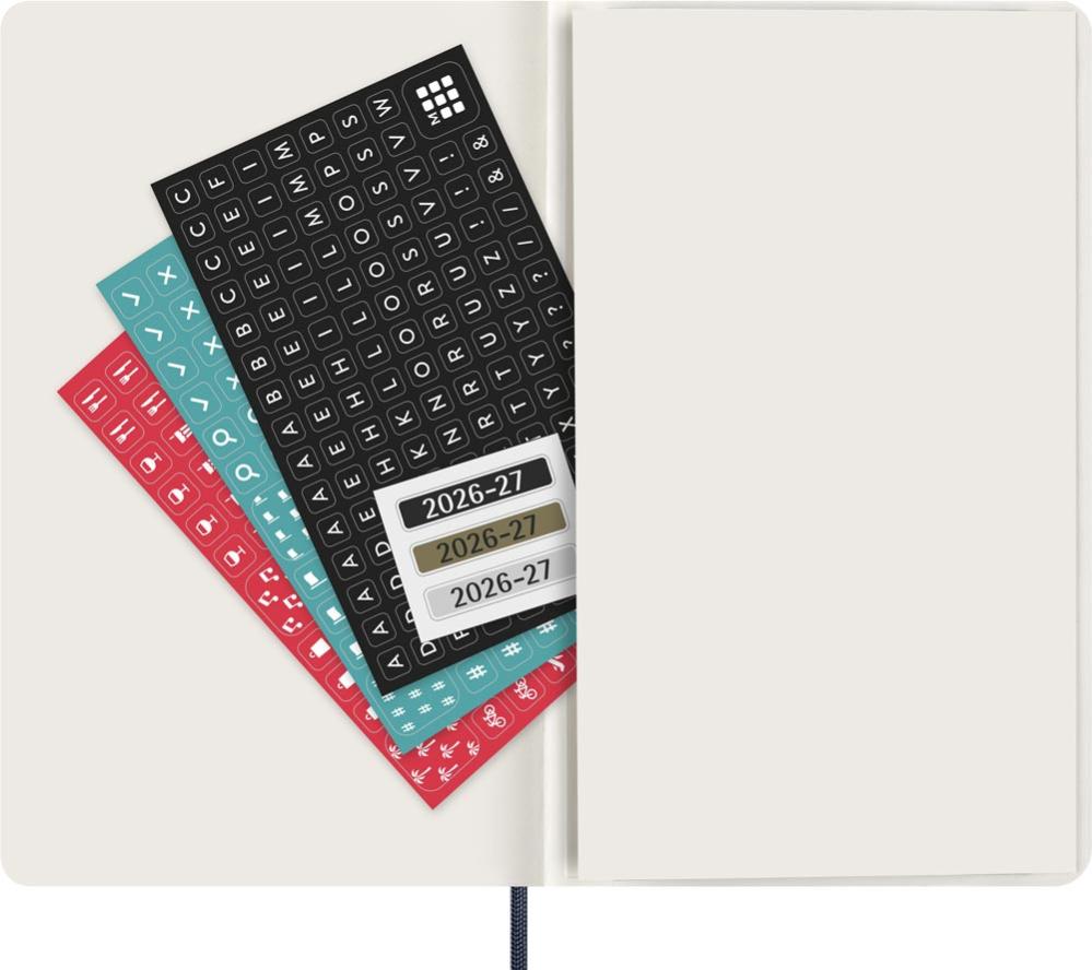 Dessutom innehåller kalendern års- och månadsöversikt. Designen håller samma stil som de klassiska Moleskine Notebooks med de karakteristiska kännetecknen som rundade hörn, matchande bokmärkesband, expanderbar innerficka, stickers och 70 grams elfebensfärgat syrafritt papper.