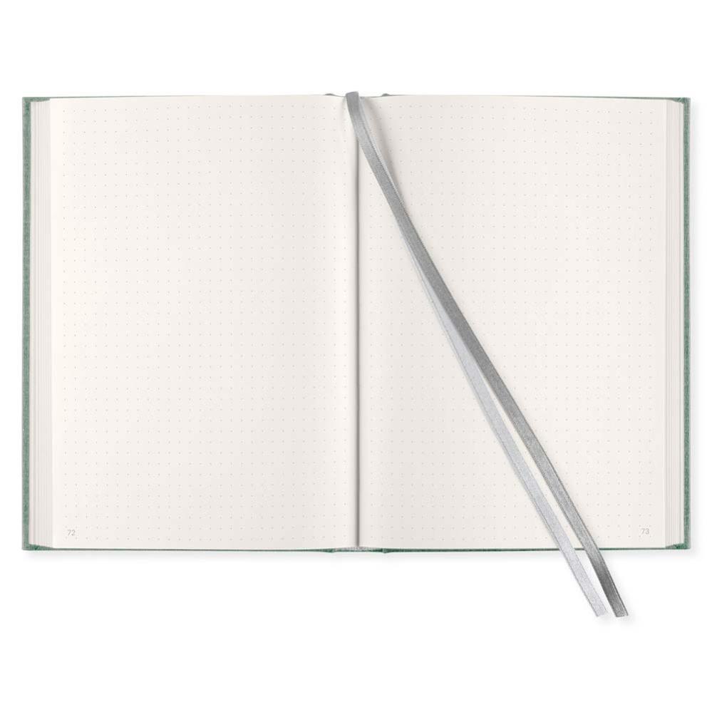 Anteckningsbok i A5-format, med prickad inlaga och 172 numrerade sidor. Den prickade inlagan ger dig full kreativ frihet. Innehållsförteckning, sidnumrering och två märkband hjälper dig att snabbt hitta det du söker.