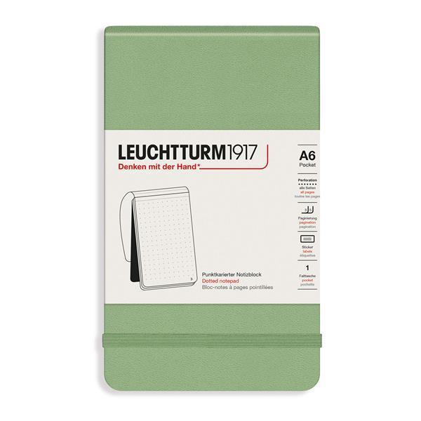 Leuchtturm1917 - En dotted (prickad) anteckningsbok med hårt omslag, 94 numrerade perforerade sidor i behändigt A6-format. Klassiskt reporterblock med ett elastiskt band som håller anteckningsboken stängd. Ink-proof (80 g/m2) FSC-certifierat papper. Medföljer även etiketter för förvaring och arkivering