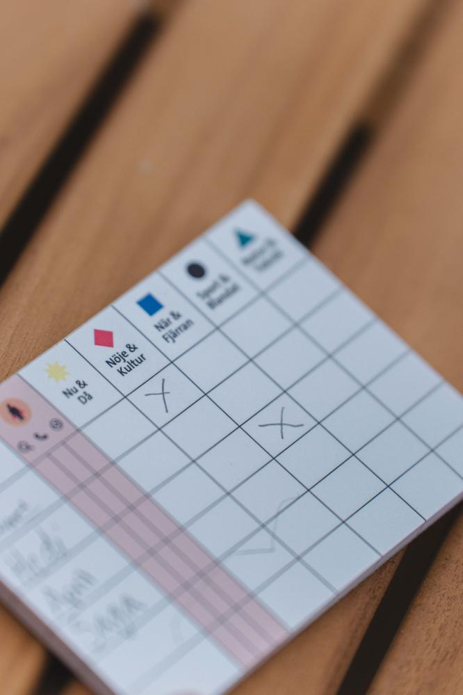 Innehåll: 780 frågor, kortficka, tärningar, block och penna.