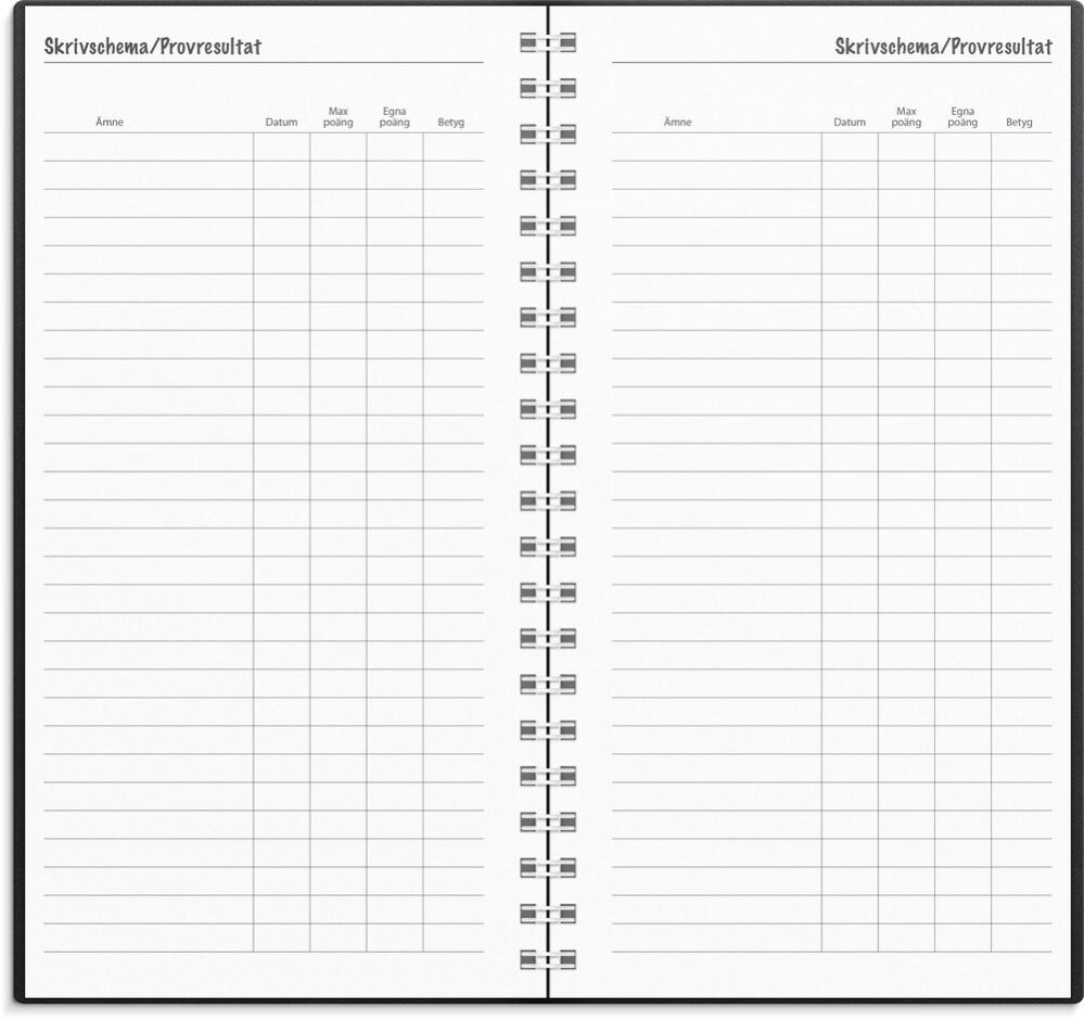 Slimmad kalender i svart plast. Utformad speciellt för dig som studerar. Förvaras enkelt i väskan, plocka fram närhelst du behöver planera din tid, boka in nöjen eller bara för att skriva ner tankar som kommer till dig under dagen. För att ge struktur i studierna innehåller kalendern även sidor schema, provresultat och tomma anteckningssidor.