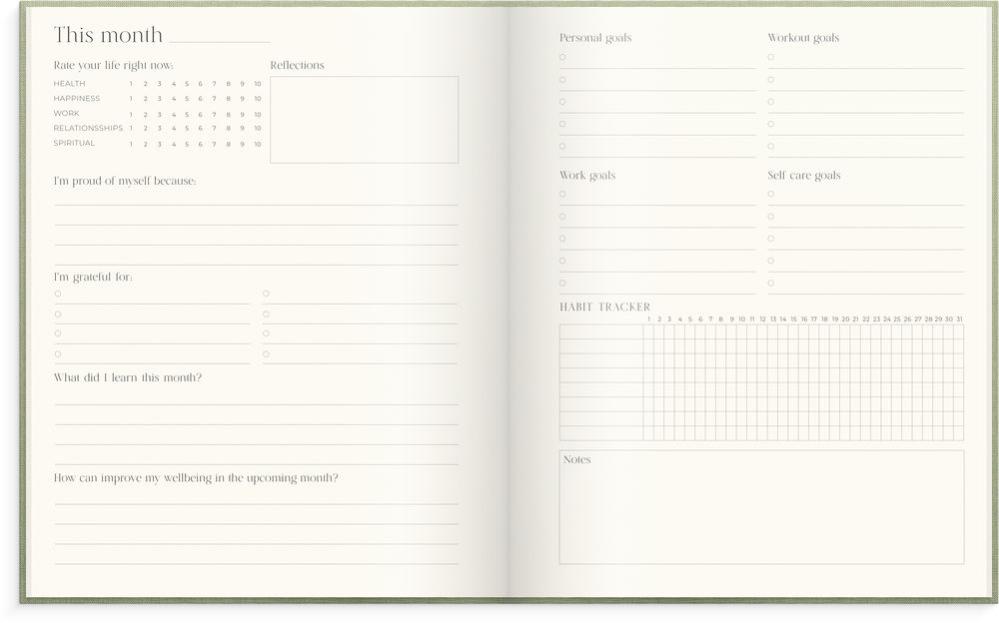 Wellness Planner är skapad för att hjälpa dig göra långsiktiga förändringar och behålla motivationen. Fokus ligger på små, hållbara steg som är lätta att göra till rutiner i vardagen.