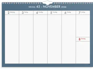 För att hålla ordning på hela familjen finns det smidiga familjekalendrar med plats för alla familjemedlemmar som underlättar planering och även kan ge viss sinnesro. Familjekalendrarna har mellan två och sex kolumner.