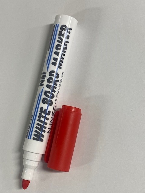 Röd whiteboardpenna med rund spets. Alkoholbaserat bläck